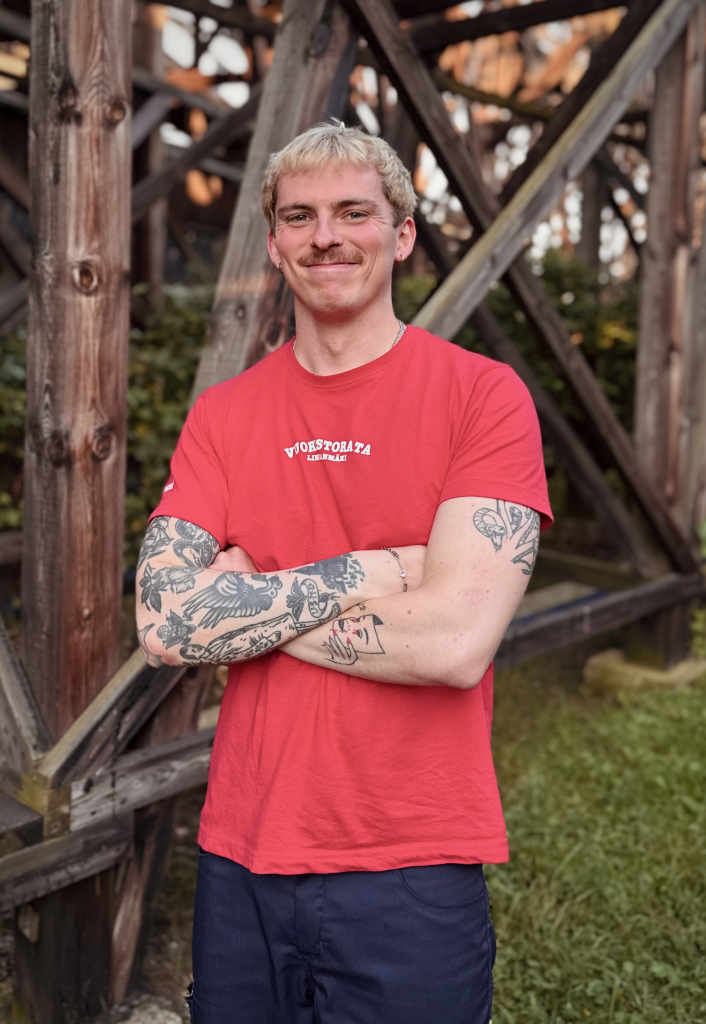 Samuel handles the demanding task of the brakemaster with confidence: he is a calm observer with a charisma that exudes a unique determination. This tattooed heart melter has Vuoristorata's many situations under control, whether he's loading trains on the platform or braking at the back of the train. In his spare time, Samuel enjoys the company of his friends, working out and metal music.